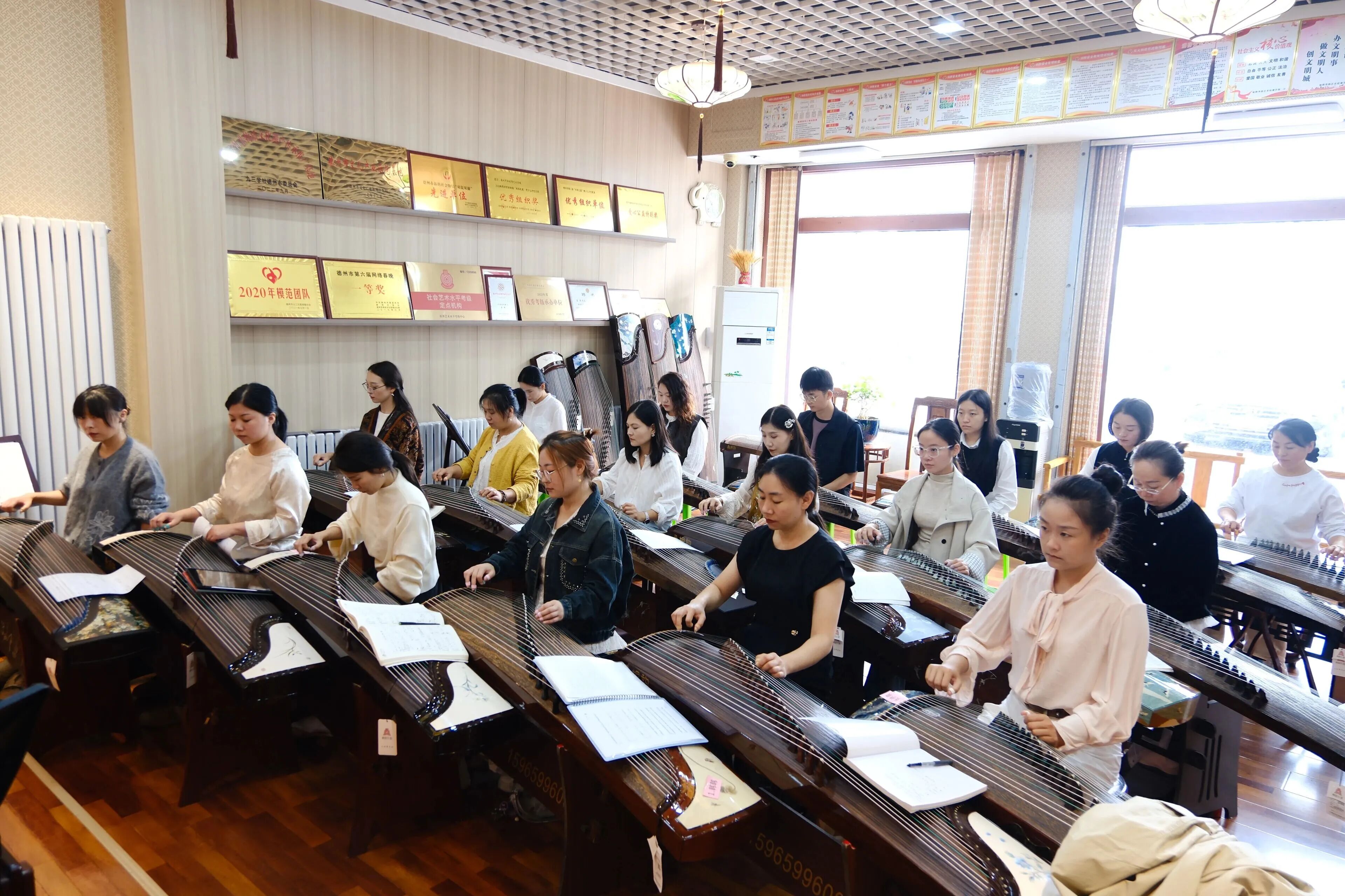 两天的研修时光短暂却充实,从晨光微露到夜色降临,教室里的琴声、讨论声从未停歇。结课之际,学员们纷纷分享收获:有爱好者说 “终于攻克了《幻想曲》的难点,对古筝的热爱又多了几分”。最后大家一起和黄教授合影留念。